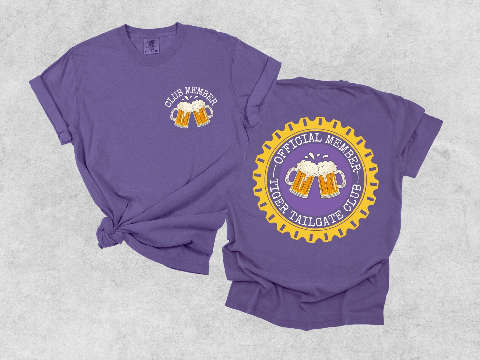 Get game day ready with this fun "Tiger Tailgate Club" t-shirt. Whether you're grilling, chilling, or cheering from the sidelines, this shirt is made for fans who know how to party before the kickoff. Perfect for tailgates, gamedays, or any tiger-related gathering!